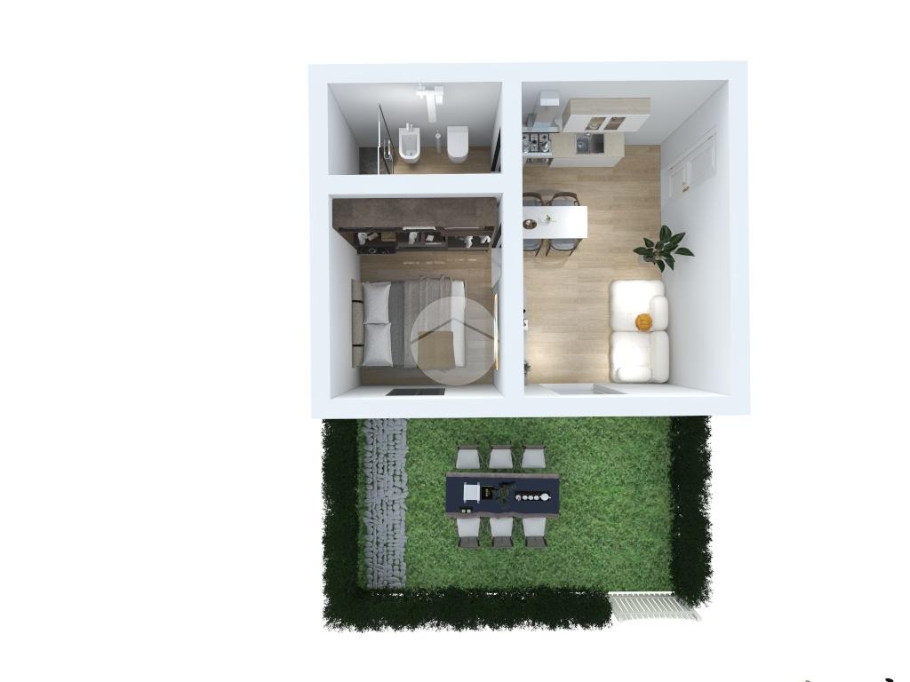 L’appartamento è composto da un luminoso soggiorno con angolo cottura, un bagno con doccia e una spaziosa camera matrimoniale.