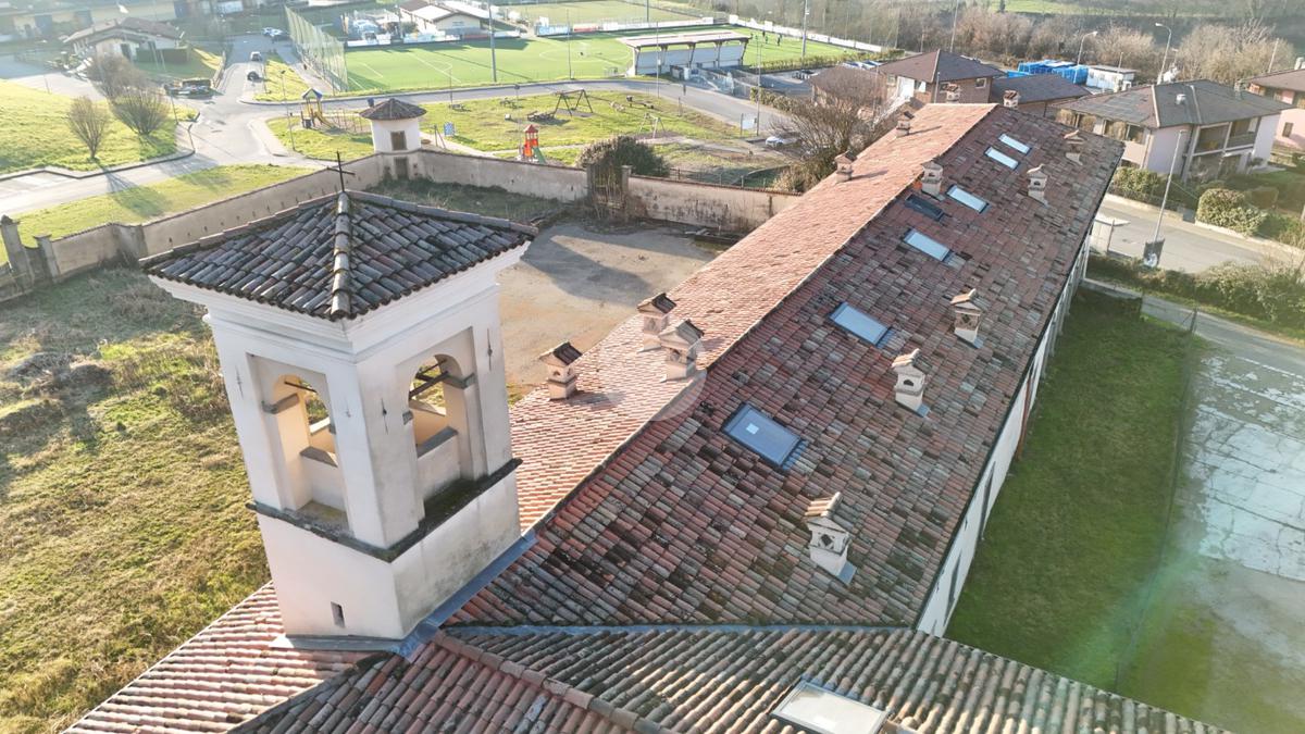 Al piano terra è presente una caratteristica chiesetta con sacrestia e campanile, elemento architettonico che conferisce unicità all'intero complesso. La proprità dispone di corte esclusiva sia sul fronte con area di circa 2.000 mq, sia sul retro. Completa la proprietà un piano interrato di 1.200 mq con possibilità di realizzare posti auto o autorimessa.