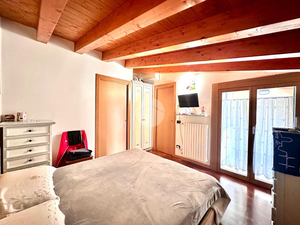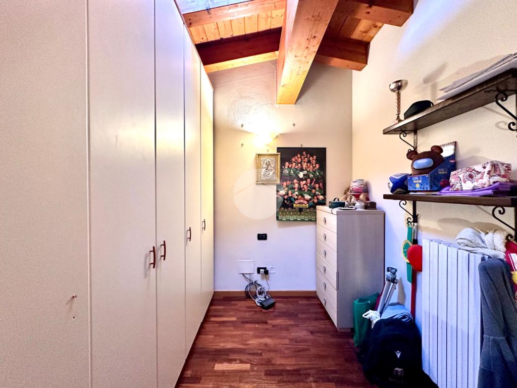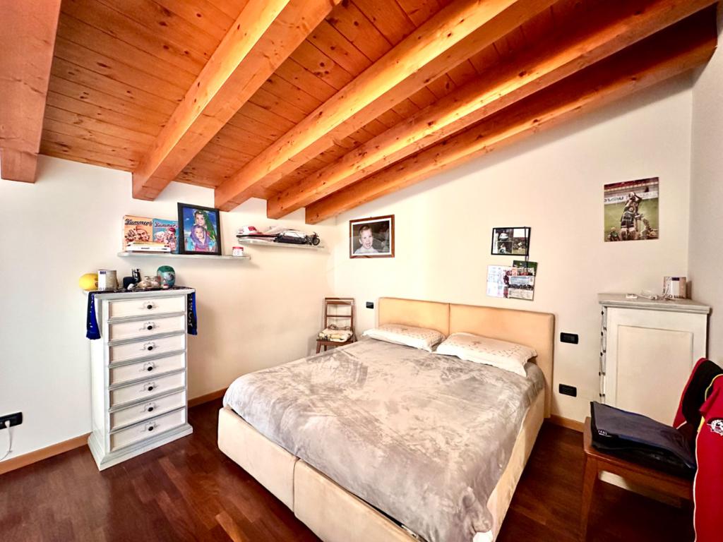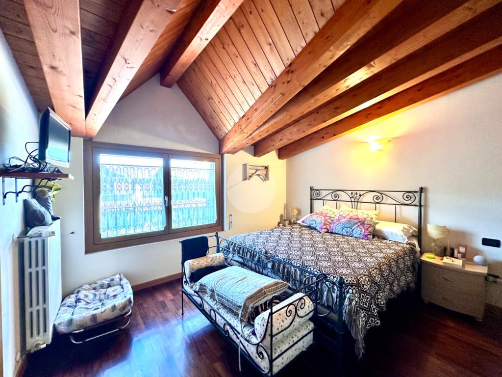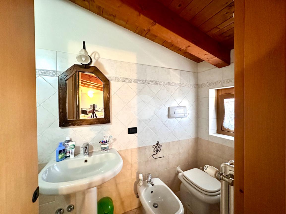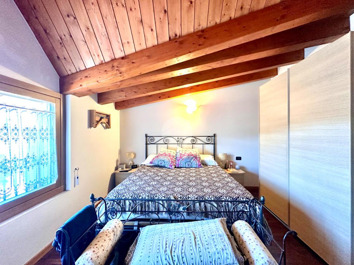 Al piano superiore, caratterizzato da travi a vista e ambienti mansardati, si trova la zona notte composta da una camera matrimoniale, due camere singole e un bagno finestrato con vasca.