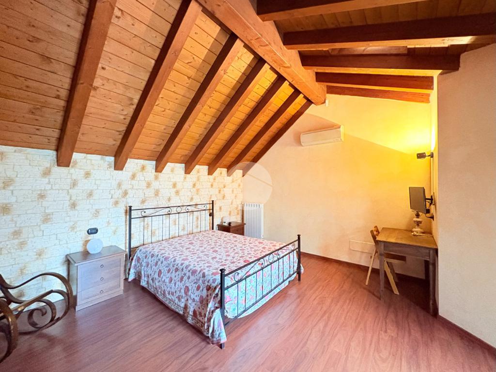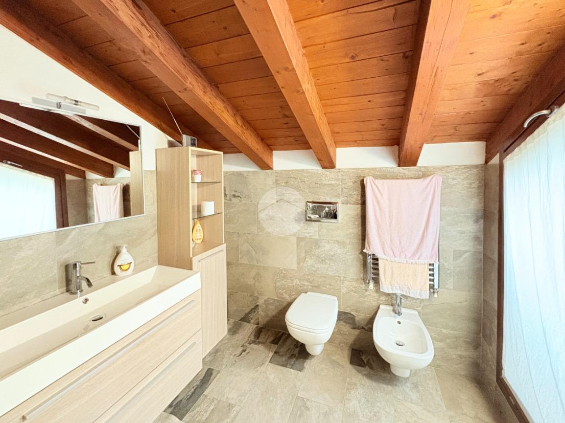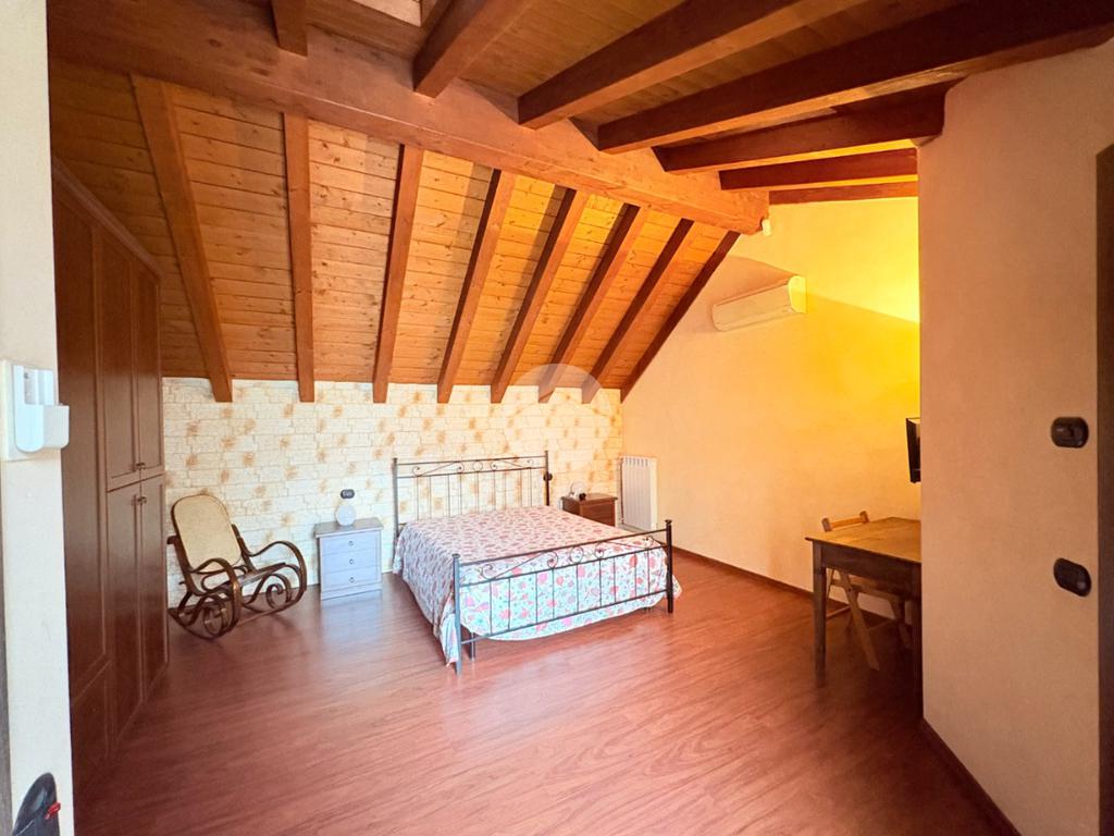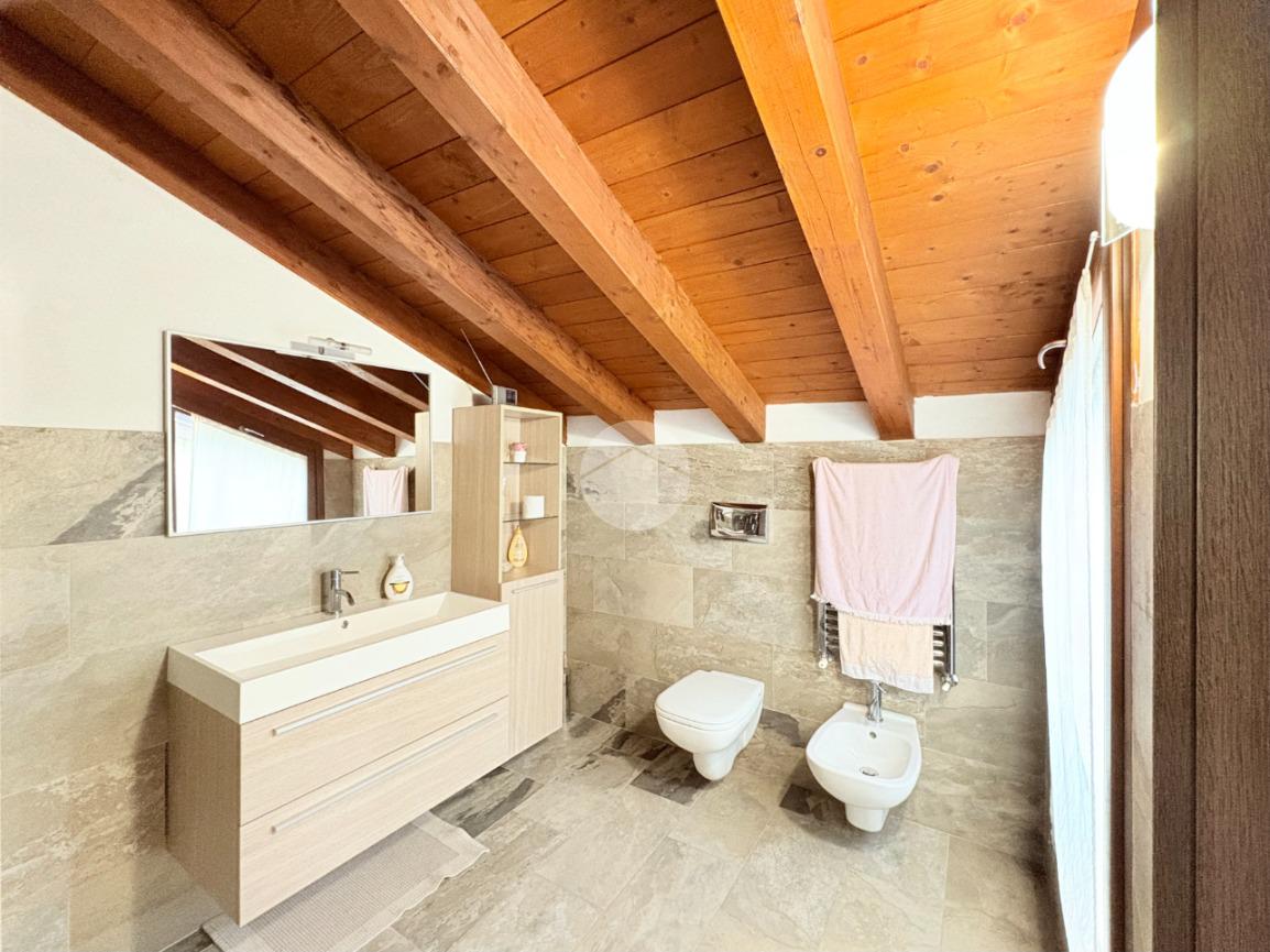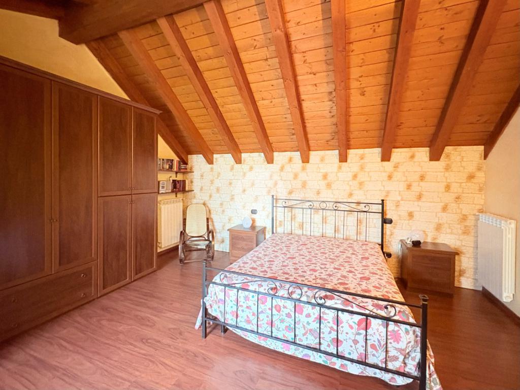 Salendo al primo piano, impreziosito da suggestive travi a vista, troviamo una spaziosa zona notte, un secondo bagno dotato di doccia e una suggestiva terrazza con vista panoramica sul lago d'iseo.