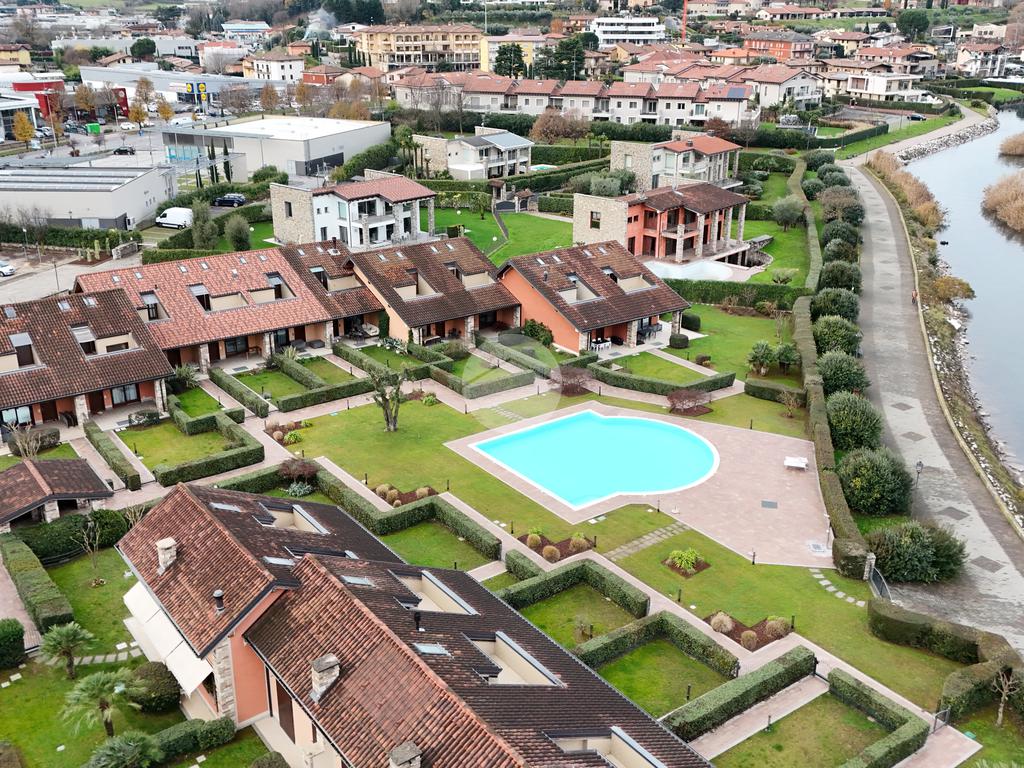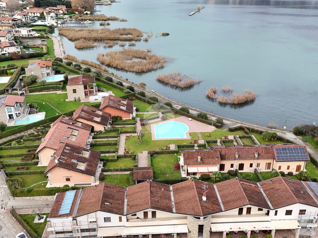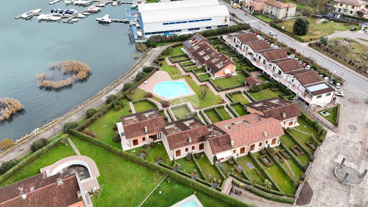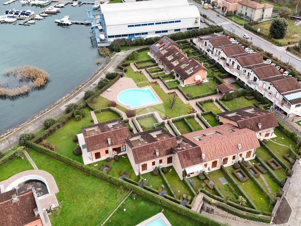 In contesto residenziale elegante e riservato, proponiamo in vendita una splendida villetta a schiera disposta su tre livelli, completa di giardino privato e ampia piscina condominiale fronte lago.